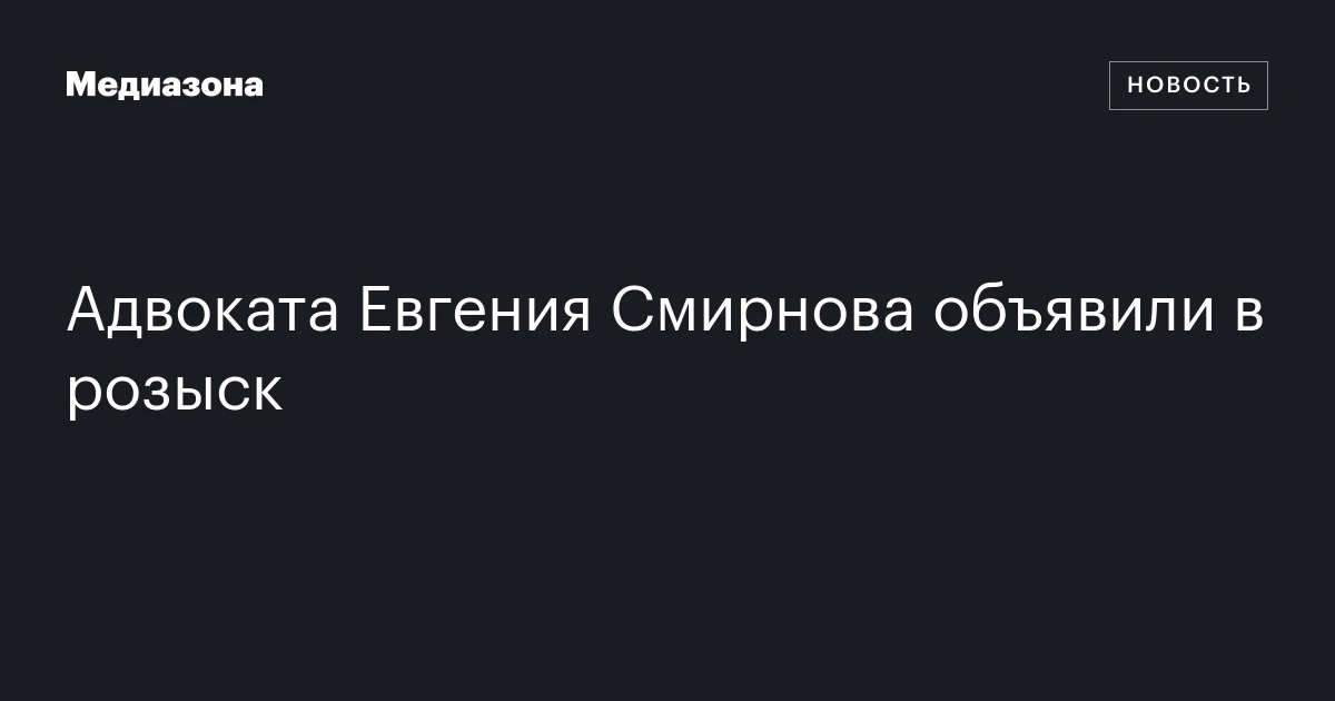 Министерство внутренних дел России объявило в розыск известного адвоката Евгения Смирнова. Об этом сообщил правозащитный проект «Первый отдел», заметив, что информация о розыске появилась в базе министерства, сообщает «Медиазона».