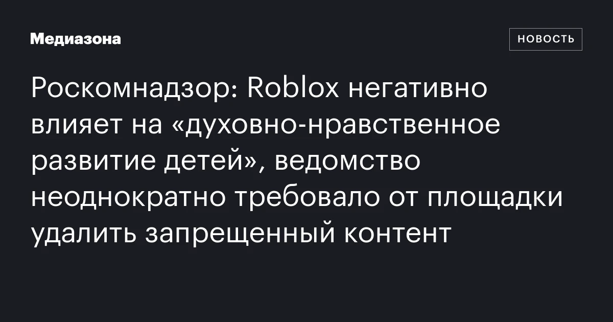 «Российская газета» утверждает, что Роскомнадзор таким образом прокомментировал «обращения граждан о деструктивном поведении игроков» в Roblox.