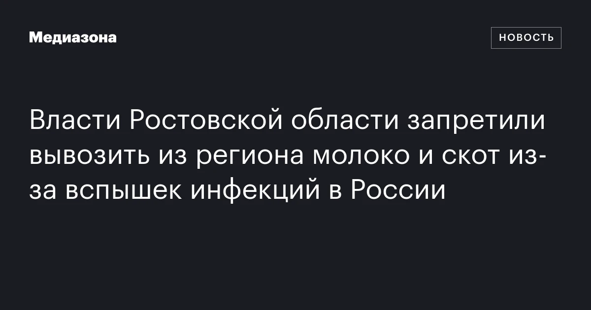 Власти Ростовской области ввели ограничения на вывоз молока, продукции животного происхождения и живого скота с территории региона, ссылаясь на некую «напряженную эпизоотическую обстановку» в России. Региональное министерство сельского хозяйства и продовольствия, сообщившее об этом, предпочло не вдаваться в детали, будто бы инфекционные заболевания — это секретная информация.