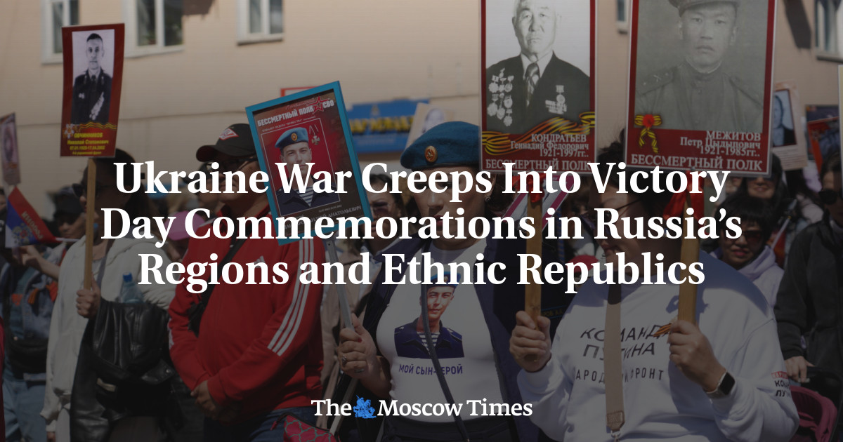 Люди, несущие фотографии близких, погибших на поле боя в Украине с 2022 года, были замечены марширующими рядом с теми, кто чтит память родственников, сражавшихся против нацистской Германии в республиках Бурятия, Тыва и Саха (Якутия), а также в Забайкальском, Иркутском и Омском регионах, среди прочих.