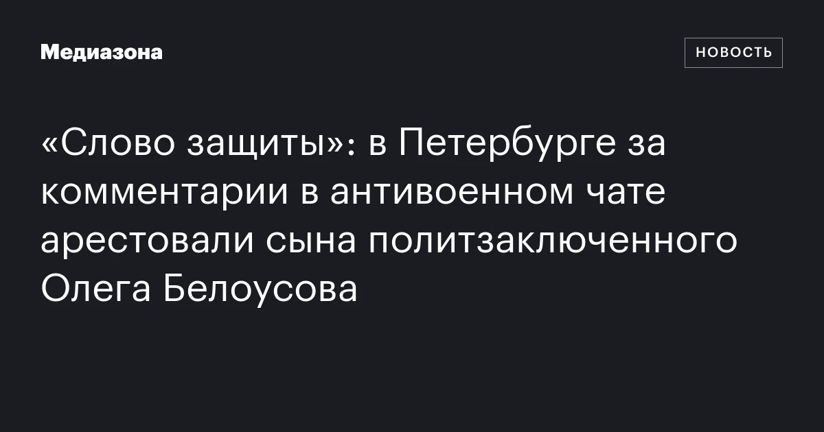 Петербург вновь оказался в центре внимания из-за ареста Даниила Белоусова, молодого человека, чьё имя стало известно благодаря его отцу — политзаключённому Олегу Белоусову. Об этом сообщают источники проекта «Слово защиты», ссылаясь на письмо Павла Синельникова, фигуранта дела «Весны».