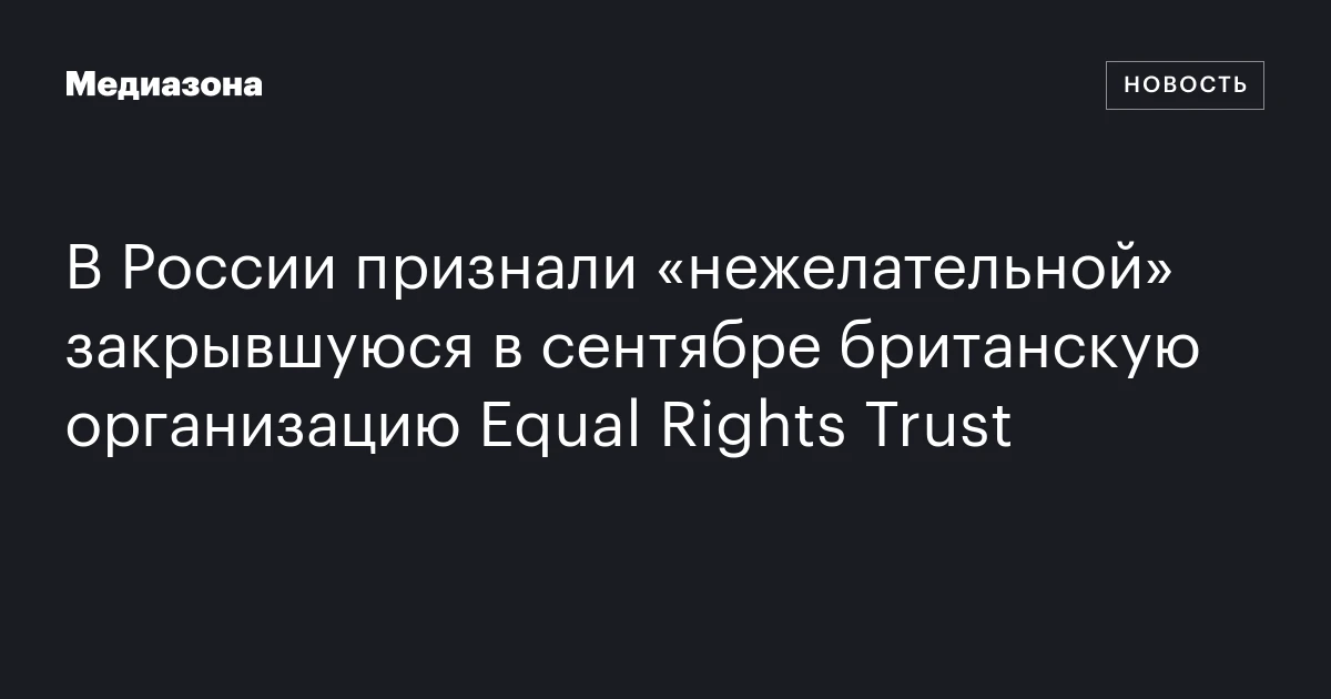 Генеральная прокуратура России объявила британскую организацию Equal Rights Trust «нежелательной»