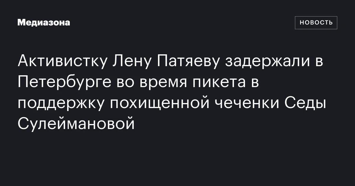 Стоит напомнить, что в 2025 году суд в Петербурге уже назначил Патяевой 20 часов обязательных работ за пикет в поддержку Сулеймановой на мосту Кадырова. Позже её задержали в Чечне, когда она вышла с плакатом «Где Седа Сулейманова?!» в сквере журналистов у проспекта Путина в Грозном. Видимо, это место стало ещё одним доказательством того, что в России даже география может быть политически ангажированной.