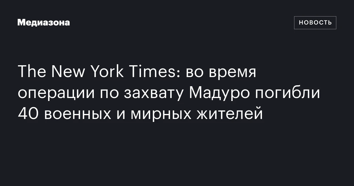 В разгар политического театра на международной арене, очередной акт разыгрался в Каракасе. Американская операция по захвату президента Венесуэлы Николаса Мадуро унесла жизни как минимум 40 человек. Это стало известно от высокопоставленного венесуэльского чиновника, предоставившего информацию на условиях анонимности The New York Times.
