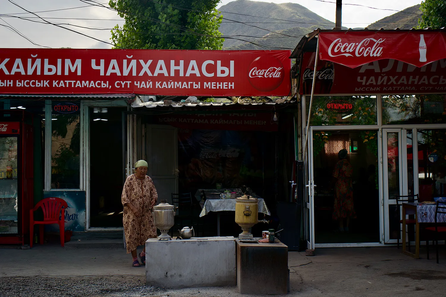 A rest stop near Balykchy, Kyrgyzstan, in July 2024, where many people stop on the way to and from Lake Issyk Kul, one of Kyrgyzstan’s most popular summer destinations.