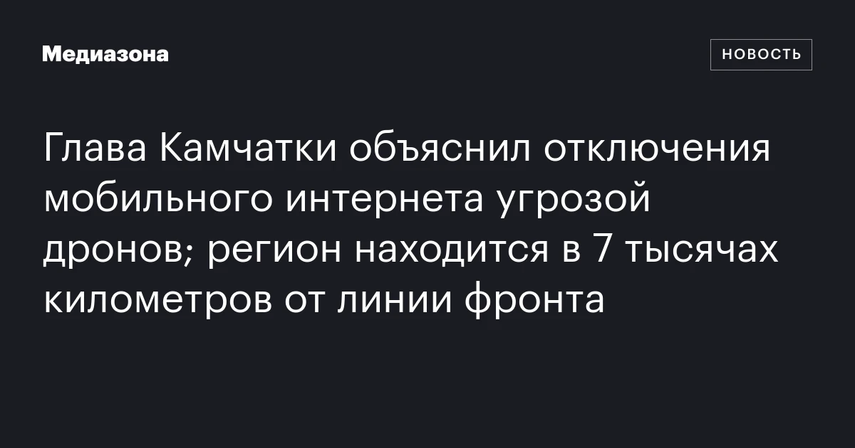 Владимир Солодов, губернатор Камчатского края, заявил, что отключения мобильного интернета в регионе связаны с угрозой атаки дронов. Сообщение об этом появилось в его официальном телеграм-канале.