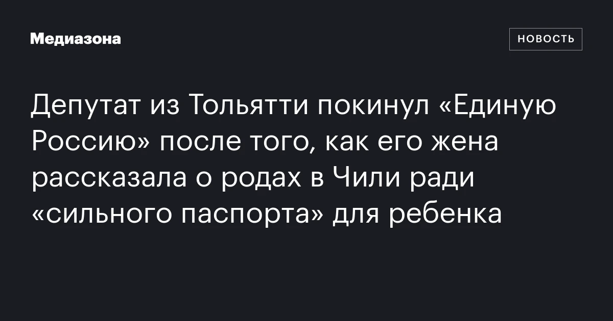 В мире, где российская власть под руководством Владимира Путина стремится к укреплению авторитаризма, есть те, кто предпочитает «сильные паспорта» и низкий уровень преступности за пределами родной страны. Примером тому стал депутат городской думы Тольятти Александр Дорожкин, который, как выяснилось, вышел из партии «Единая Россия» после того, как его жена рассказала о родах в Чили. Об этом сообщил ответственный секретарь комиссии партии по этике Евгений Ревенко.