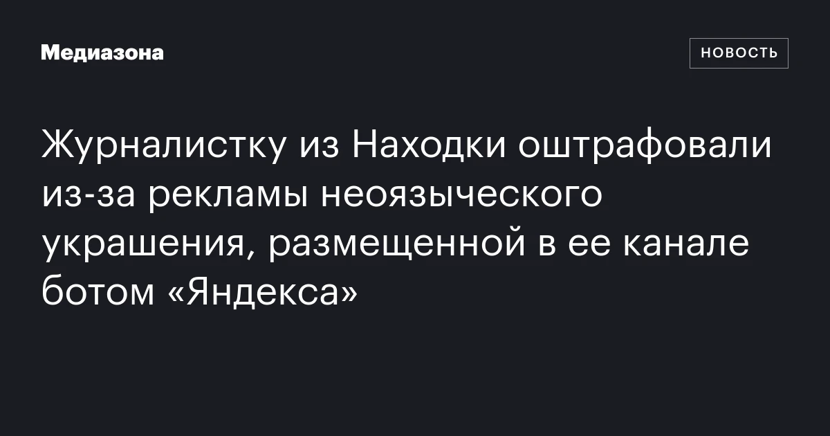 Находкинский городской суд Приморья оштрафовал журналистку Анну Шарипову на две тысячи рублей за рекламу неоязыческих украшений в ее телеграм-канале. Об этом сообщила сама Шарипова.