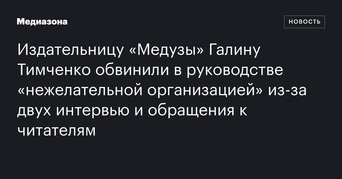 Генпрокуратура объявила «Медузу» «нежелательной» организацией в январе 2023 года, заявив, что их деятельность «представляет угрозу основам конституционного строя и безопасности Российской Федерации». В 2024 году Тимченко оштрафовали, а затем объявили «иностранным агентом». В соответствии с этой логикой, любое независимое мнение становится опасным для государственной машины.