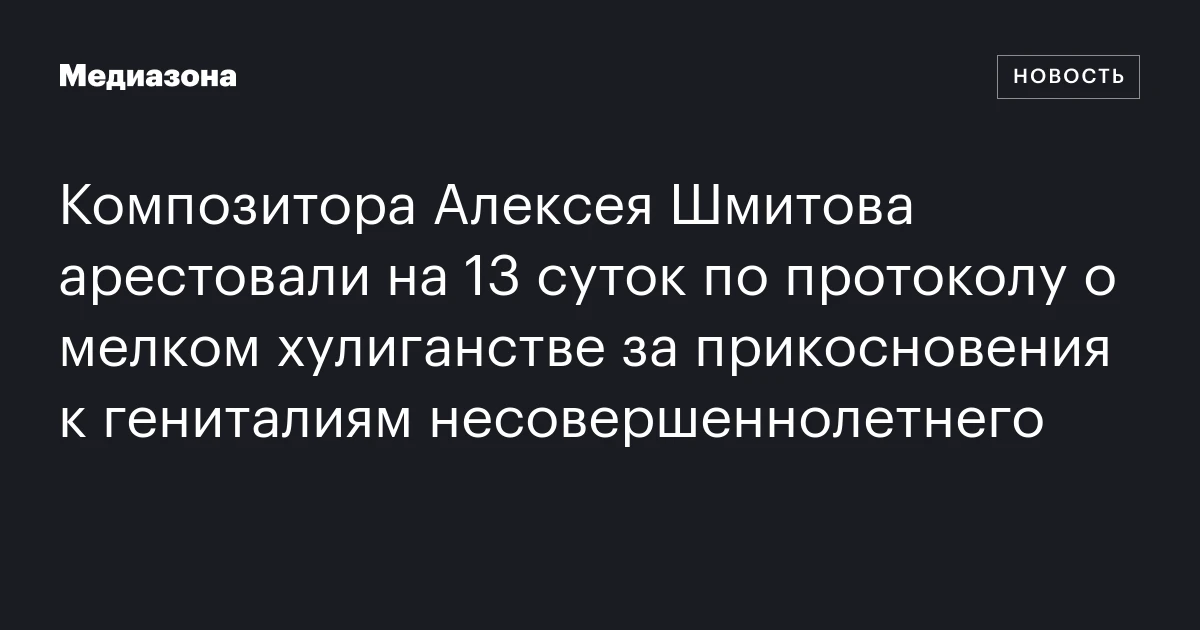 Нагатинский районный суд Москвы, вновь подтверждая свою преданность традициям абсурда, назначил 13 суток ареста композитору и органисту Алексею Шмитову. Основанием для столь экстравагантного жеста правосудия стал протокол о мелком хулиганстве (часть 1 статьи 20.1 КоАП), как сообщает пресс-служба судов столицы.