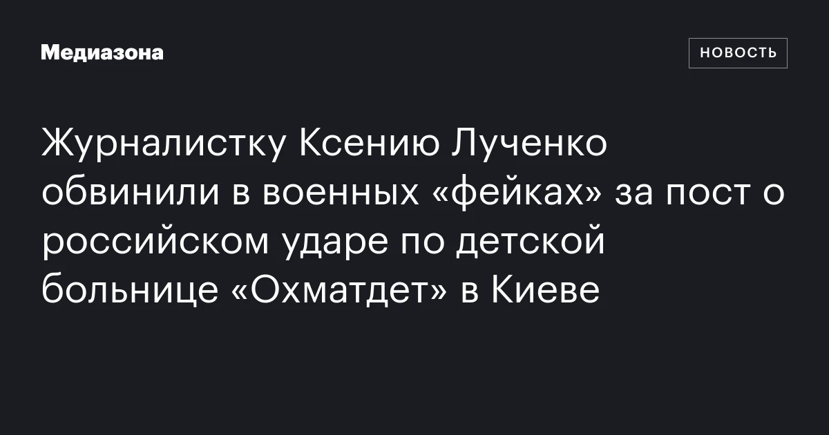 В Черемушкинском районном суде Москвы рассматривается заочный арест журналистки Ксении Лученко, обвиненной в распространении военных «фейков» (часть 2 статьи 207.3 УК) из-за поста в её телеграм-канале «Православие и зомби». В этом посте она подробно описала ракетный удар по детской больнице «Охматдет» в Киеве, который произошёл в июле 2024 года, а также перепечатала сообщение на сайте «Эхо Москвы».