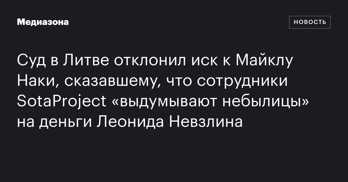 Леонид Невзлин, финансирующий SotaProject, оказался в центре скандала после расследования ФБК, которое связало его с покушением на оппозиционера в Вильнюсе. Несмотря на все попытки дискредитации, суд признал, что критика Наки имела основание и не была направлена на юридическое лицо.