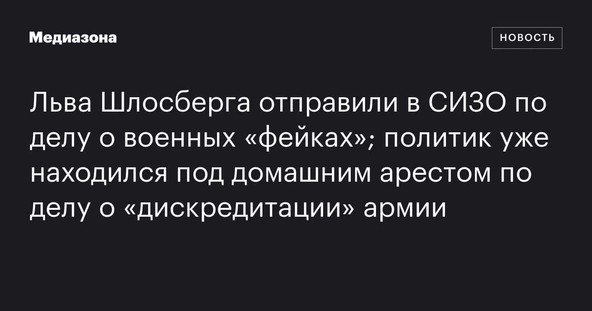 Против политика возбудили дело о распространении «фейков» про действия российских военных в Украине, основываясь на пункте «д» части 2 статьи 207.3 УК. Это обвинение выглядит как настоящий фарс, учитывая, что поводом стал репост в телеграм-канале Шлосберга, сделанный в феврале 2022 года, в то время как статью о «фейках» ввели в Уголовный кодекс лишь в марте 2022 года.