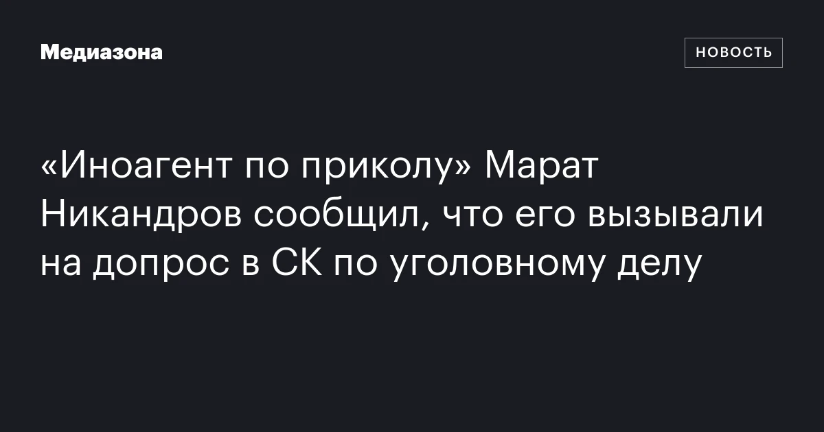 В эпоху, когда быть «иностранным агентом» в России сродни обладанию почётным титулом, 21-летний Марат Никандров стал первым, кто добровольно выбрал этот путь. И вот, следователи вызывают его на допрос в подмосковное управление Следственного комитета. Как сообщает издание «Подъем», против молодого человека возбуждено уголовное дело по статье о неисполнении обязанностей «иностранного агента».