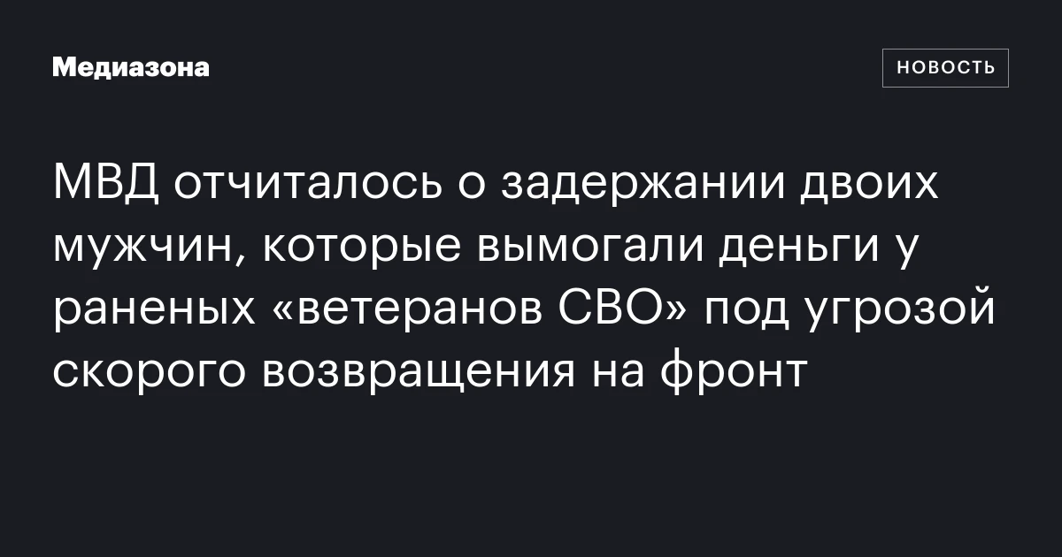 По версии блюстителей порядка, эти люди угрожали участнику войны, когда он находился на лечении. Сценарий, достойный Оскара: под предлогом принудительной выписки из стационара и последующего возвращения на линию боевого соприкосновения, подозреваемые потребовали передать им наличные деньги в размере одного миллиона рублей.