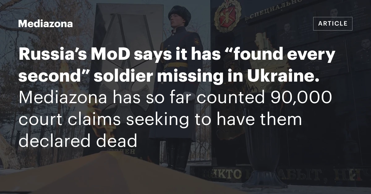 Суды уже зарегистрировали более 90 000 таких исков, связанных с пропавшими или погибшими военнослужащими. Поток не ослабевает: к концу года регистрировалось около 2 000 дел в неделю. Если цифры Белоусова верны, то общее количество пропавших в войне может быть вдвое больше — то есть более 180 000 человек.