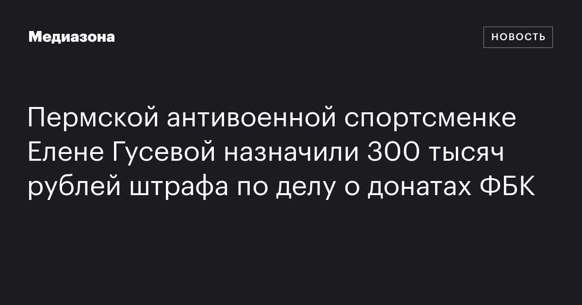 Березниковский городской суд Пермского края вынес приговор спортсменке и активистке Елене Гусевой, оштрафовав ее на 300 тысяч рублей за финансирование так называемой экстремистской организации. Это сообщение, как ни странно, ссылается на прокуратуру и издание Properm.ru.
