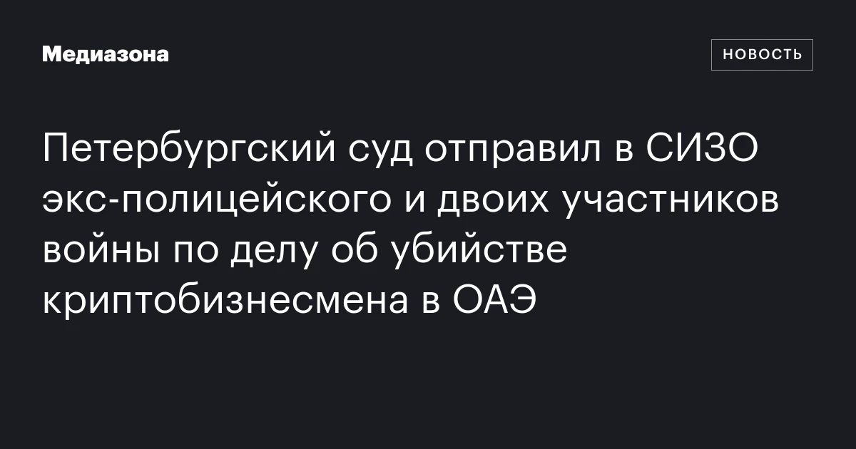 Октябрьский районный суд Петербурга отправил в СИЗО троих обвиняемых по делу об убийстве криптотрейдера Романа Новака и его жены Анны, которых похитили в ОАЭ, сообщила пресс-служба судов города.
