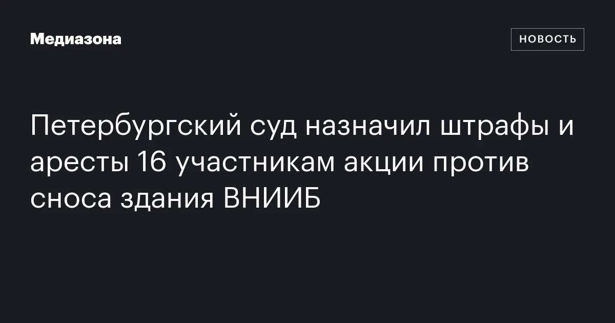 Вечером 9 января пресс-служба судов Петербурга сообщила о вынесении административных наказаний 14 защитникам здания ВНИИБ. Сценарий, как всегда, предсказуем: участники акции признаны виновными в нарушении порядка пребывания в общественных местах (статья 20.2.2 КоАП). Власти, видимо, решили, что протесты против сноса здания — это не что иное, как подрыв устоев государства.