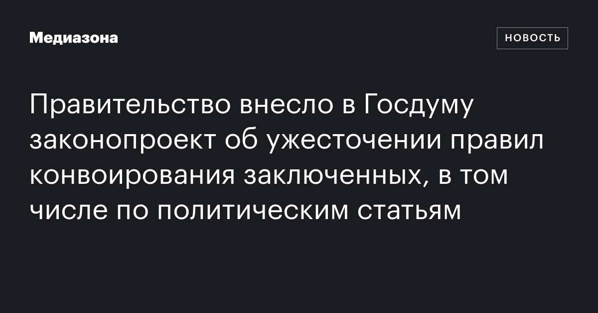 Российское правительство внесло на рассмотрение Госдумы законопроект, который предлагает ужесточить правила конвоирования осужденных и подследственных. Карточка законопроекта 31 октября появилась в электронной базе парламента, заметил проект «Слово защите».