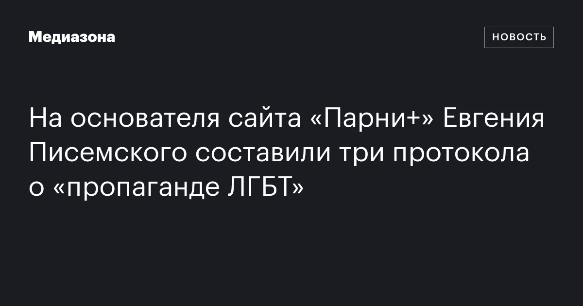 В мировой судебный участок №374 Таганского района Москвы поступили три протокола о «пропаганде ЛГБТ» в СМИ или интернете (часть 4 статьи 6.21 КоАП) в отношении основателя и главного редактора сайта «Парни+» («Парни Плюс») Евгения Писемского, заметила «Медиазона».