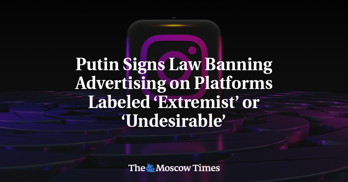 Владимир Путин в понедельник подписал закон, запрещающий рекламу через организации, признанные “нежелательными” или “экстремистскими”. Это решение вероятно заставит бизнес отказаться от продвижения своих товаров и услуг на таких платформах, как Facebook и Instagram.