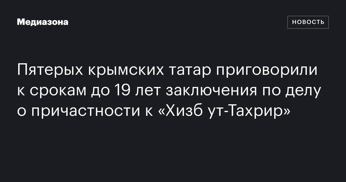 Южный окружной военный суд огласил приговор по делу так называемой первой джанкойской группы «Хизб ут-Тахрир» — пятерым крымчанам назначили сроки от 13 до 19 лет. Такое решение сообщила пресс-служба суда.