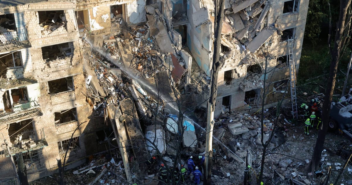 По меньшей мере семь человек погибли и 31 получили ранения в столице, сообщил Ткаченко. Целый участок жилого здания был разрушен, а еще пять зданий получили повреждения, добавил он.