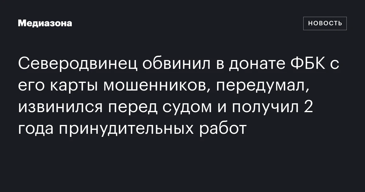 В Северодвинске, Архангельская область, суд вынес приговор 37-летнему Константину Михееву, обвинив его в переводе 2 100 рублей Фонду борьбы с коррупцией. Михееву назначили два года принудительных работ. Это очередной пример того, как российская власть использует судебную систему для подавления инакомыслия, маскируя это под борьбу с экстремизмом.