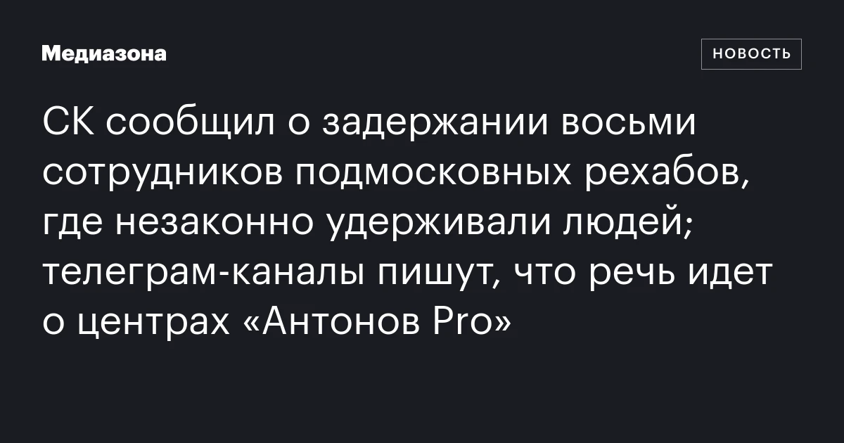 В рехабах находились люди из разных регионов, и за «лечение» они платили от 50 до 80 тысяч рублей в месяц. Это еще один пример того, как благие намерения превращаются в коммерческий проект, где прибыль важнее реальной помощи. Связанные с силовиками телеграм-каналы Baza и Shot сообщают о задержании сотрудников центров «Антонов Pro», включая основателя Максима Антонова.