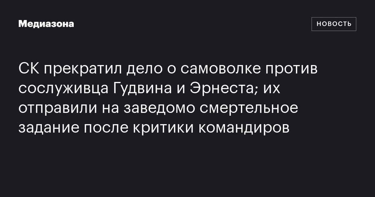 Военный следственный отдел СК по Петербургскому гарнизону прекратил дело о самовольном оставлении части против добровольца Виктора Каплана (позывной «Сократ») — сослуживца погибших Дмитрия Лысакова («Гудвин») и Сергея Грицая («Эрнест»). Об этом сообщили сам Каплан и адвокат Алексей Калугин.
