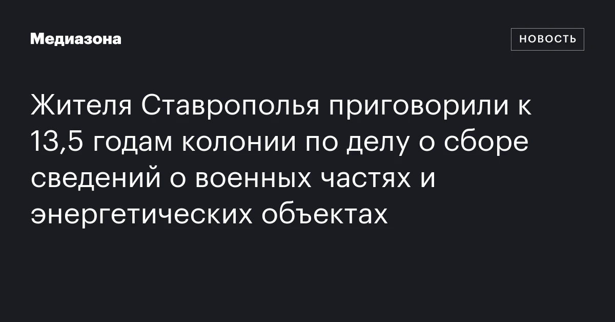 Ставропольский краевой суд вынес приговор — 13,5 лет в колонии общего режима — жителю Петровского округа по обвинению в государственной измене, согласно статье 275 УК РФ. Об этом сообщает пресс-служба региональной прокуратуры.