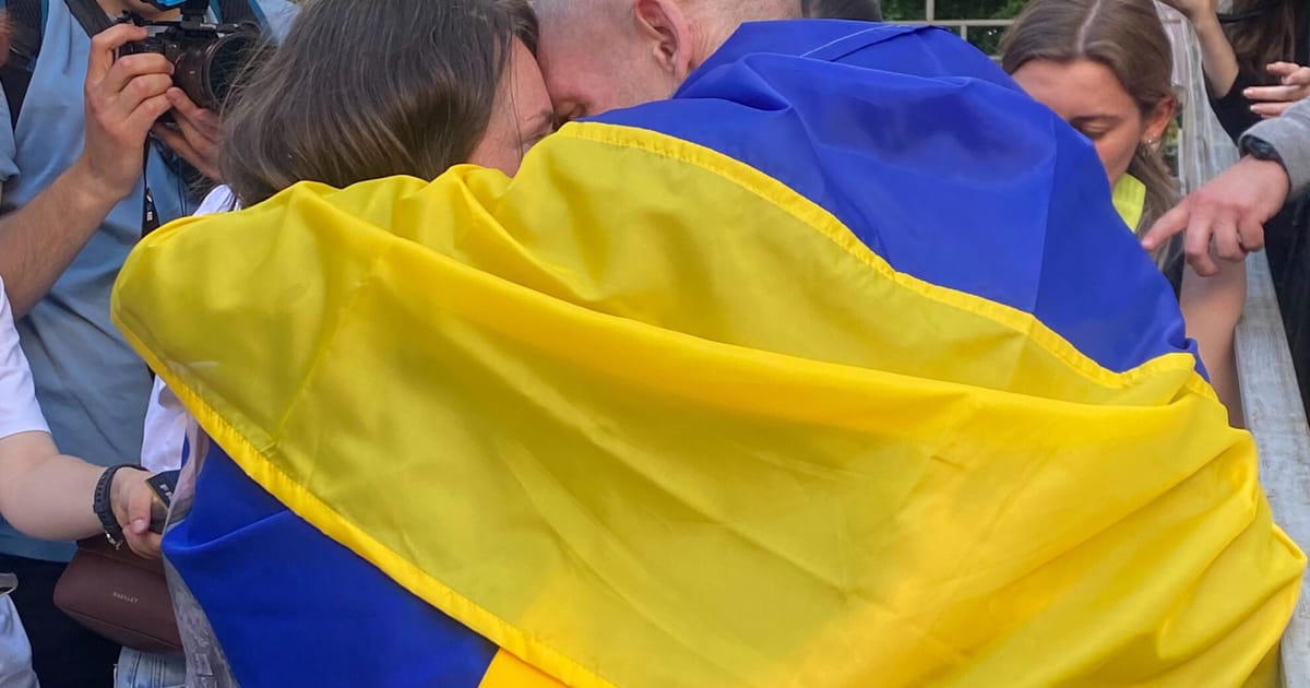 Когда автобусы останавливаются и первые солдаты выходят, рядом раздаётся счастливый крик, где Татьяна, молодая женщина с флагом морской пехоты Украины, видит лицо своего мужа.