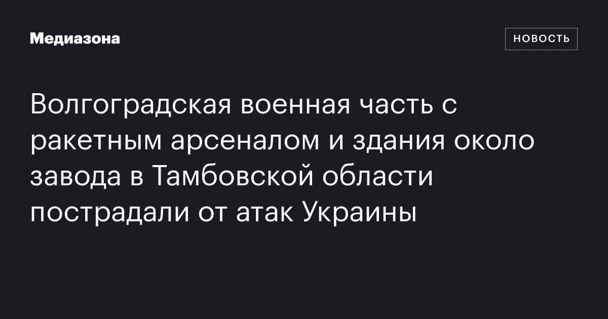 В Волгоградской области, в поселке Котлубань, украинская армия нанесла ракетный удар по военной части, где хранится ракетный арсенал. Результатом стал пожар, который вынудил губернатора Андрея Бочарова эвакуировать жителей поселка в целях защиты от угрозы взрыва снарядов. Украинский телеграм-канал Supernova+ утверждает, что детонация арсенала все-таки произошла, хотя официальные лица предпочитают обходить этот факт стороной.