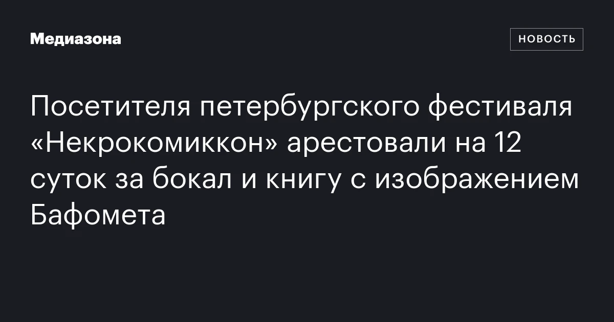 Суд Петербурга арестовал Репина на 12 суток за демонстрацию запрещенной символики. В его руках был бокал с пентаграммой и изображением Бафомета, а также книга “Сатанинские ритуалы”. Эти символы суд объявил “интернациональными символами сатанистов”, хотя на самом деле они давно стали частью мировой поп-культуры, а не опасным заговором.