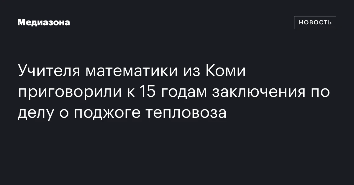 Сергей Лебедев, 24-летний учитель математики из Сыктывкара, осужден на 15 лет за диверсию на железнодорожной станции «Сыктывкар». Согласно решению Верховного суда Республики Коми, Лебедев признан виновным в поджоге тепловоза, что привело к значительным повреждениям.
