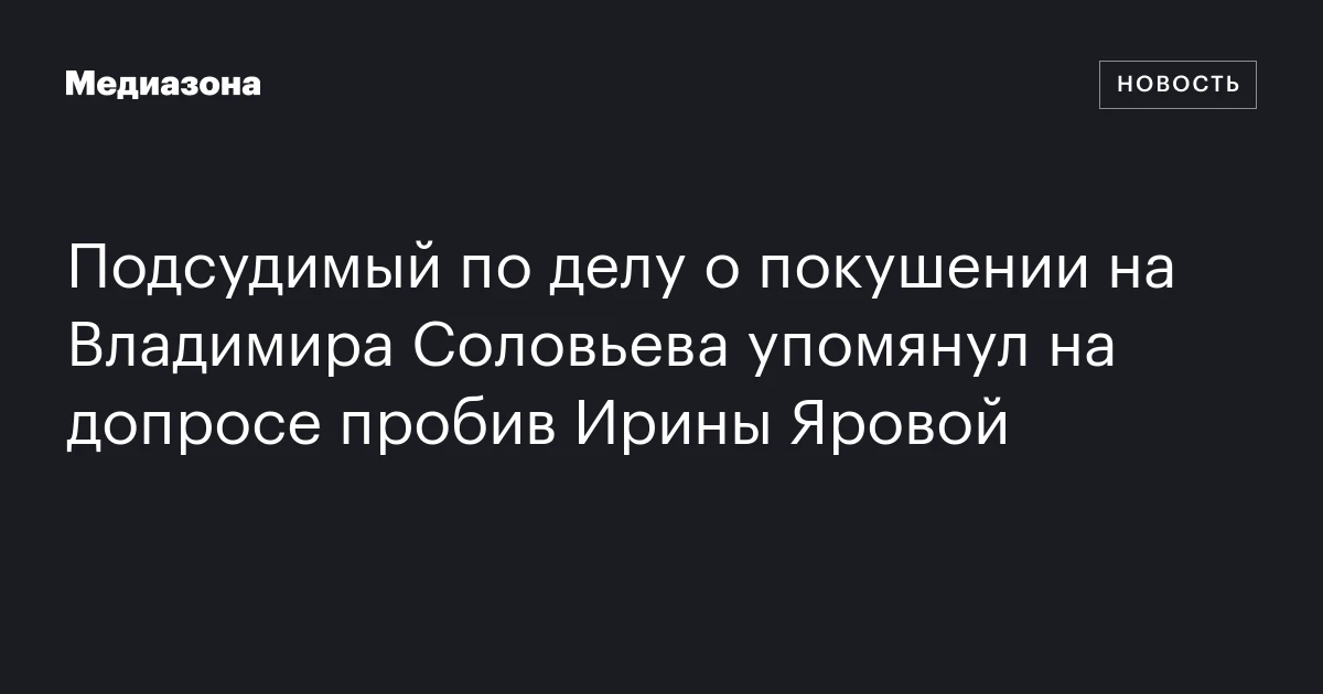 В тишине зала 2-го Западного окружного военного суда Москвы раздаются показания подсудимого Максима Дружинина, фигуранта дела о покушении на Владимира Соловьева. Однако, по словам Дружинина, в списке интересов членов группы могла значиться и депутат Госдумы Ирина Яровая. Журналист «Медиазоны» передает с места события.