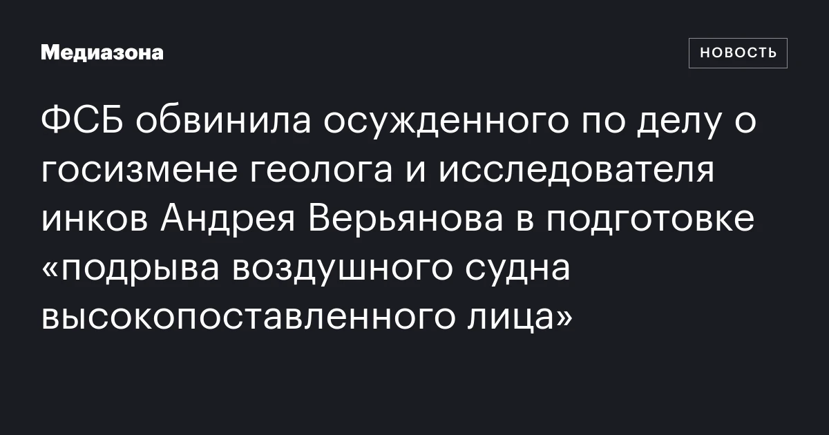 В очередной раз ФСБ России демонстрирует свое мастерство в искусстве абсурда, обвиняя геофизика и исследователя цивилизации инков Андрея Верьянова в якобы подготовке к “взрыву воздушного судна высокопоставленного лица”. Если бы не трагичность ситуации, можно было бы предположить, что это сценарий для нового шпионского фильма. Но, увы, это суровая реальность современной России.