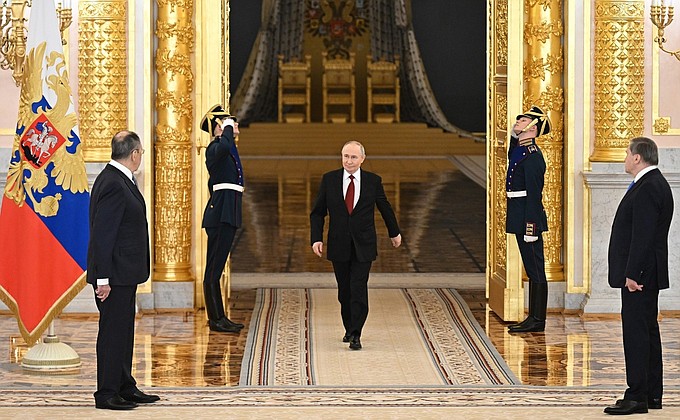Представители различных стран мира прибыли в Кремль, чтобы вручить верительные грамоты президенту России — человеку, чье имя связано с громкими международными скандалами и обвинениями в военных преступлениях. Среди них были дипломаты из Словении, Сомали, Габона, Шри-Ланки, Франции, Сенегала, Руанды, Чехии, Мавритании, Афганистана, Алжира, Португалии, Бангладеша, Бразилии, Норвегии, Швеции, Египта, Колумбии, Саудовской Аравии, Ганы, Намибии, Австрии, Кубы, Пакистана, Южной Кореи, Перу, Уругвая, Ливана, Швейцарии, Ирака, Италии и Мальдив.