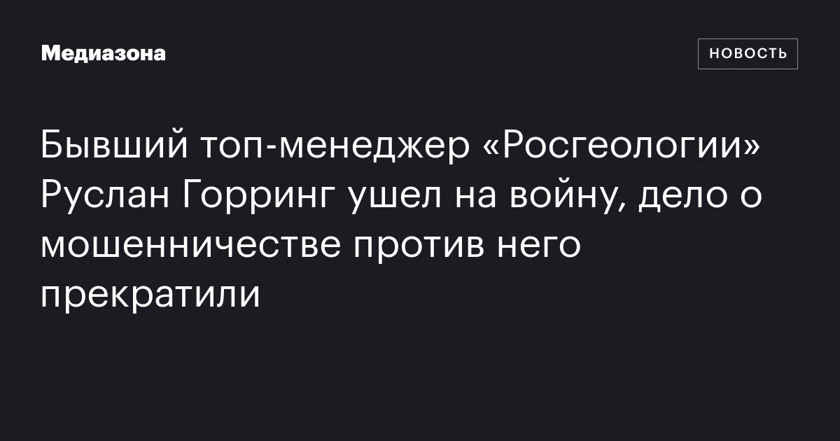 В удивительном повороте событий, Черемушкинский районный суд Москвы приостановил производство по уголовному делу против Руслана Горринга, бывшего первого заместителя главы «Росгеологии». Причина? Он заключил контракт с Минобороны и отправился на войну с Украиной. Таковы новости от корреспондента «Коммерсанта».