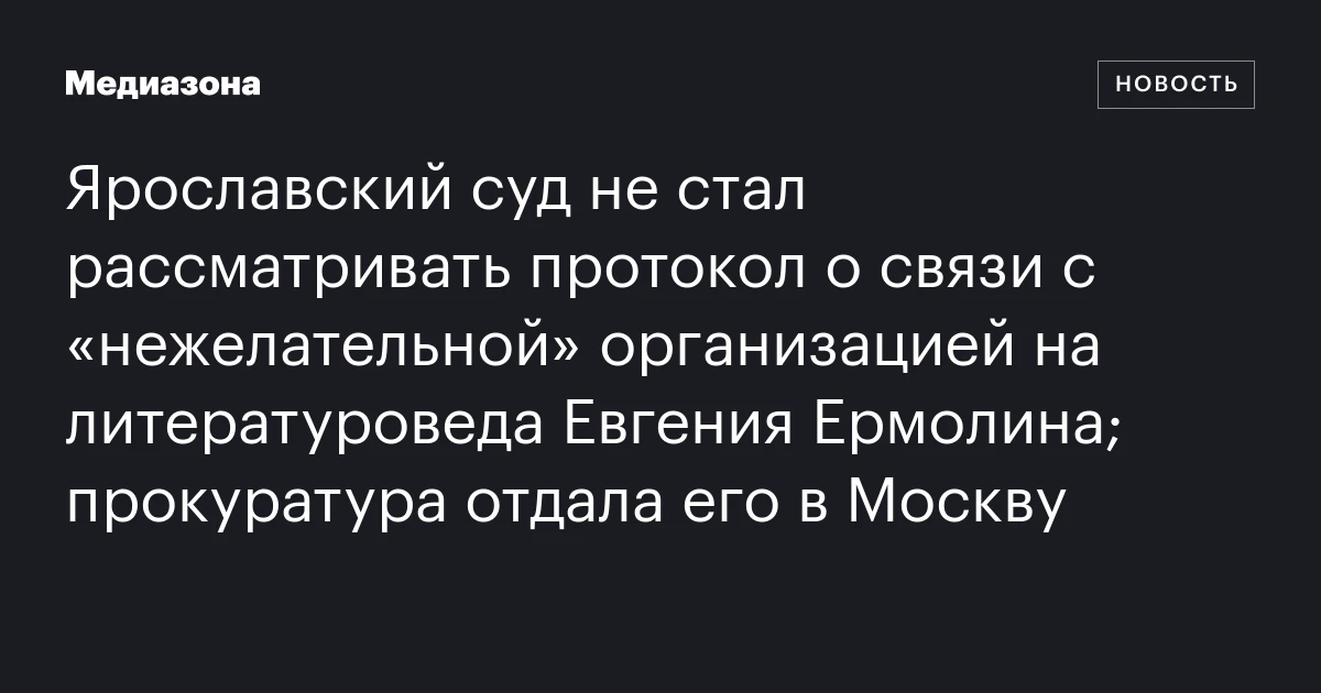 В Нагатинский районный суд Москвы поступили материалы административного дела на литературного критика и журналиста Евгения Ермолина. Его обвиняют в участии в деятельности «нежелательной» организации — статья 20.33 КоАП. Как говорится в старой шутке, в России быть поэтом — это не профессия, а диагноз. Но теперь, похоже, даже литературоведы не застрахованы от внимания системы.
