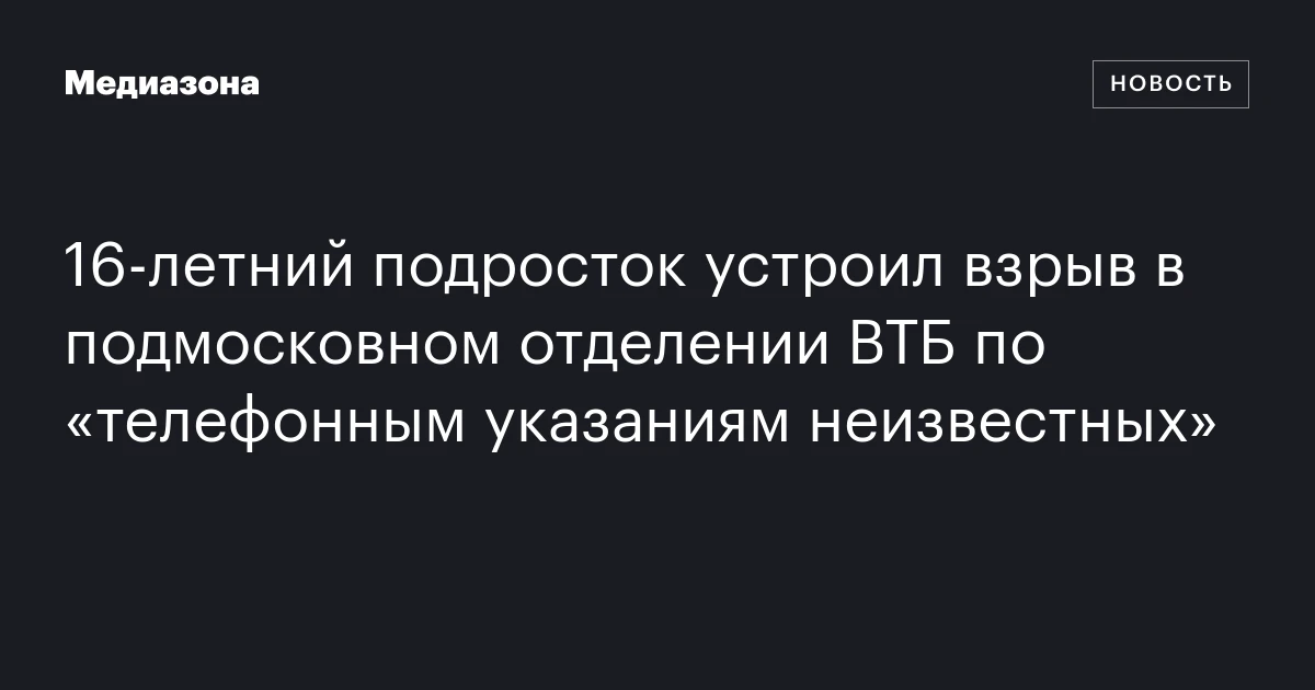 Взрыв в отделении ВТБ: юный поджигатель или жертва манипуляций?